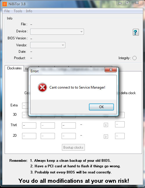 wie im nützlichen HowTo möchte ich mit NiBiTor die GPU-Spannung meiner 88GT reduzieren. Direkt beim Versuch, das BIOS auszulesen, erscheint aber folgende Fehlermeldung: