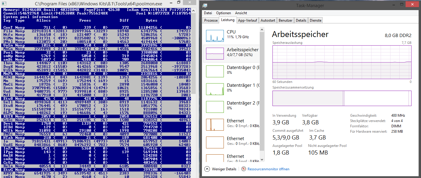. Jedoch kann ich mit dem "findstr /s blabla *.sys nicht herausfinden, wozu die Speicherfresser gehören. Jemand ne Idee?