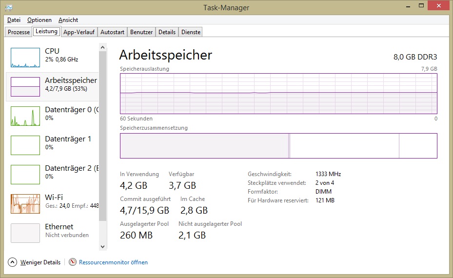 mithraldur schrieb:Das OS ist ja in der Übersicht nicht als Posten aufgeführt, aber ich fände es schon krass wenn Windows 8.1 ca. 3 GB Ram saugt.