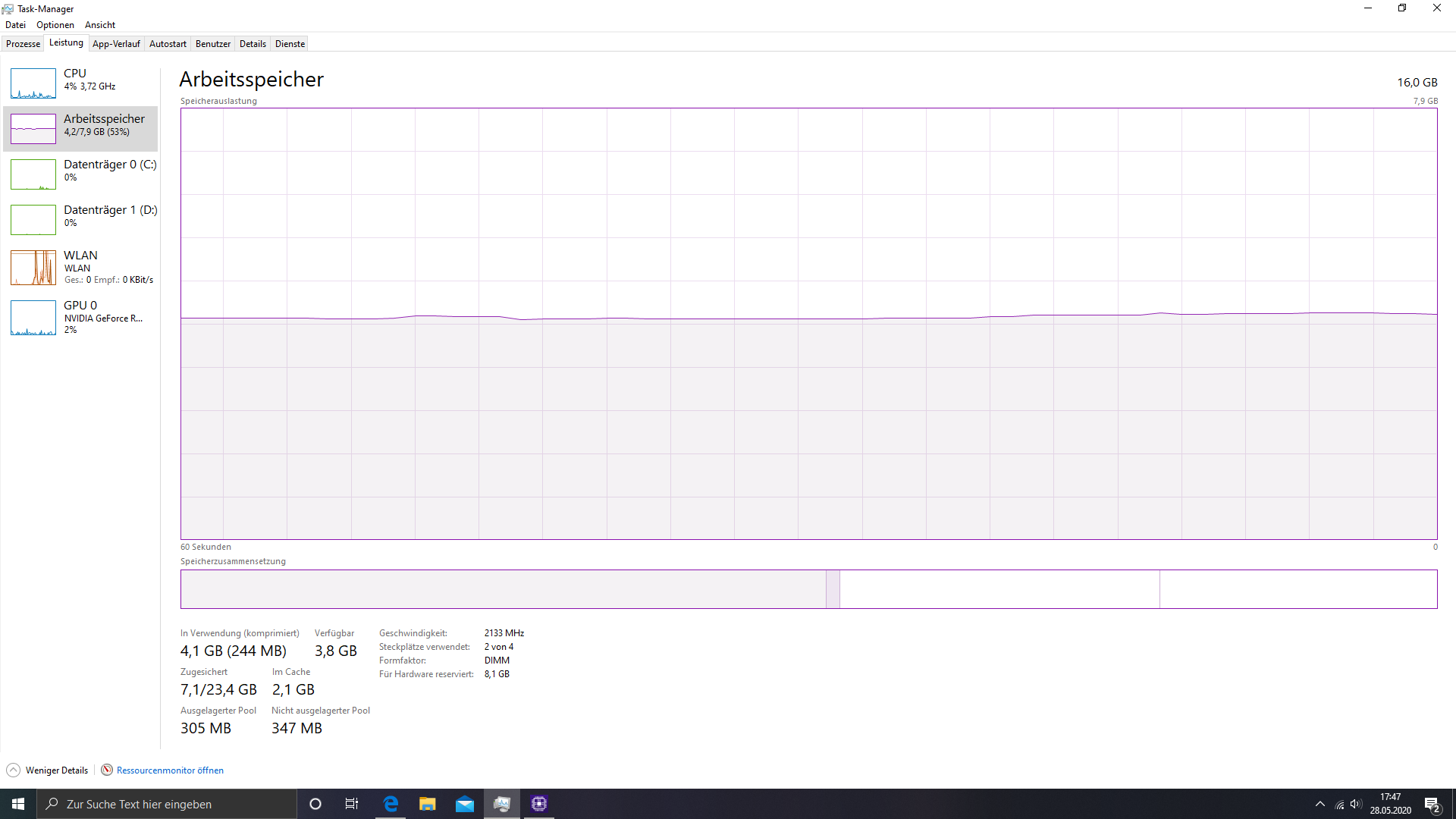 Ich habe vor ca. 3 Monaten mitbekommen dass mein PC beim Zocken oft hängt und er nicht die Leistung bringt die man erwartet, COD Warzone ist immer abgestürzt und ab diesem Zeitpunkt hat es mit Bluescreens angefangen... Ich habe mir dabei nichts gedacht und habe es ignoriert... ein paar Wochen später ging es mir so auf die Nerven dass ich mich auf die Suche gemacht habe und als ich den Taskmanager geöffnet habe sah ich dass ich nur 8GB von 16GB verwenden kann weil die anderen 8GB für "Hardware" reserviert sind. Habe mich im Internet schlau gemacht und habe jeden möglichen Versuch gemacht aber leider ohne Erfolg. Ich wusste dann nicht mehr weiter weil ich wirklich das ganze Internet durchforstet habe und zu keinem Entschluss gekommen bin und habe mir als letzte logische Lösung neuen Ram gekauft nämlich den Corsair Vengeance rgb pro 16GB 3200Mhz. Als er ankam, ausgepackt mit dem alten getauscht und....
