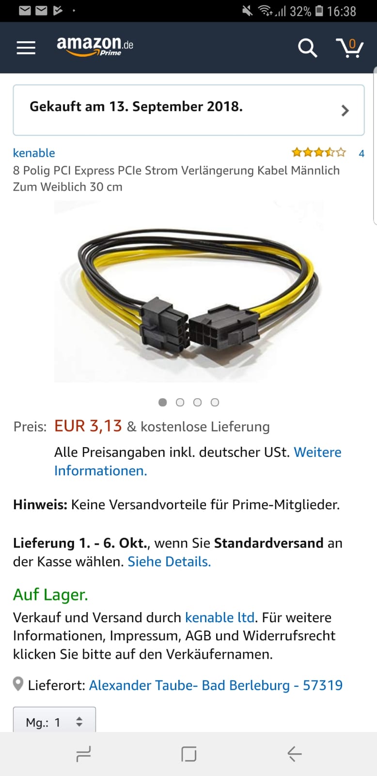 ich habe ein PCI Stromkabel bzw Verlängerungsadapter bestellt. Jetzt passt aber der männliche Teil des Adapters nicht in den weiblichen Teil des Mainboards. Muss ich mir jetzt einen neuen bestellen und hoffen dass der passt? Habe auch leider kein Geschäft in der Nähe, wo man sowas kaufen kann.