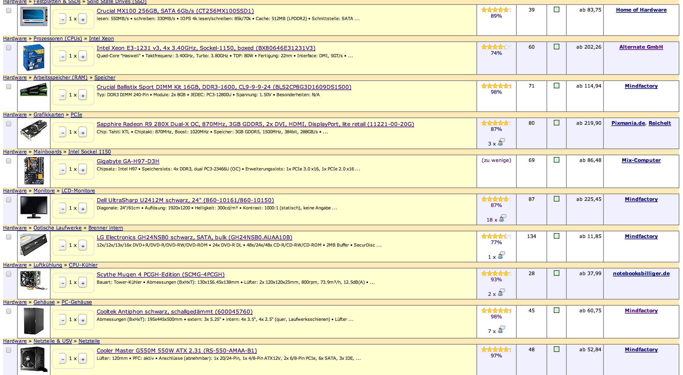 Von daher (weil du es ja unbedingt leise haben willst und für Board und Kühler schon (fast unnötigerweise) zu viel Geld ausgegeben hast) kannste nun auch noch ein hochwertigeres, leiseres Netzteil nehmen ... kommt doch nicht mehr drauf an, oder?