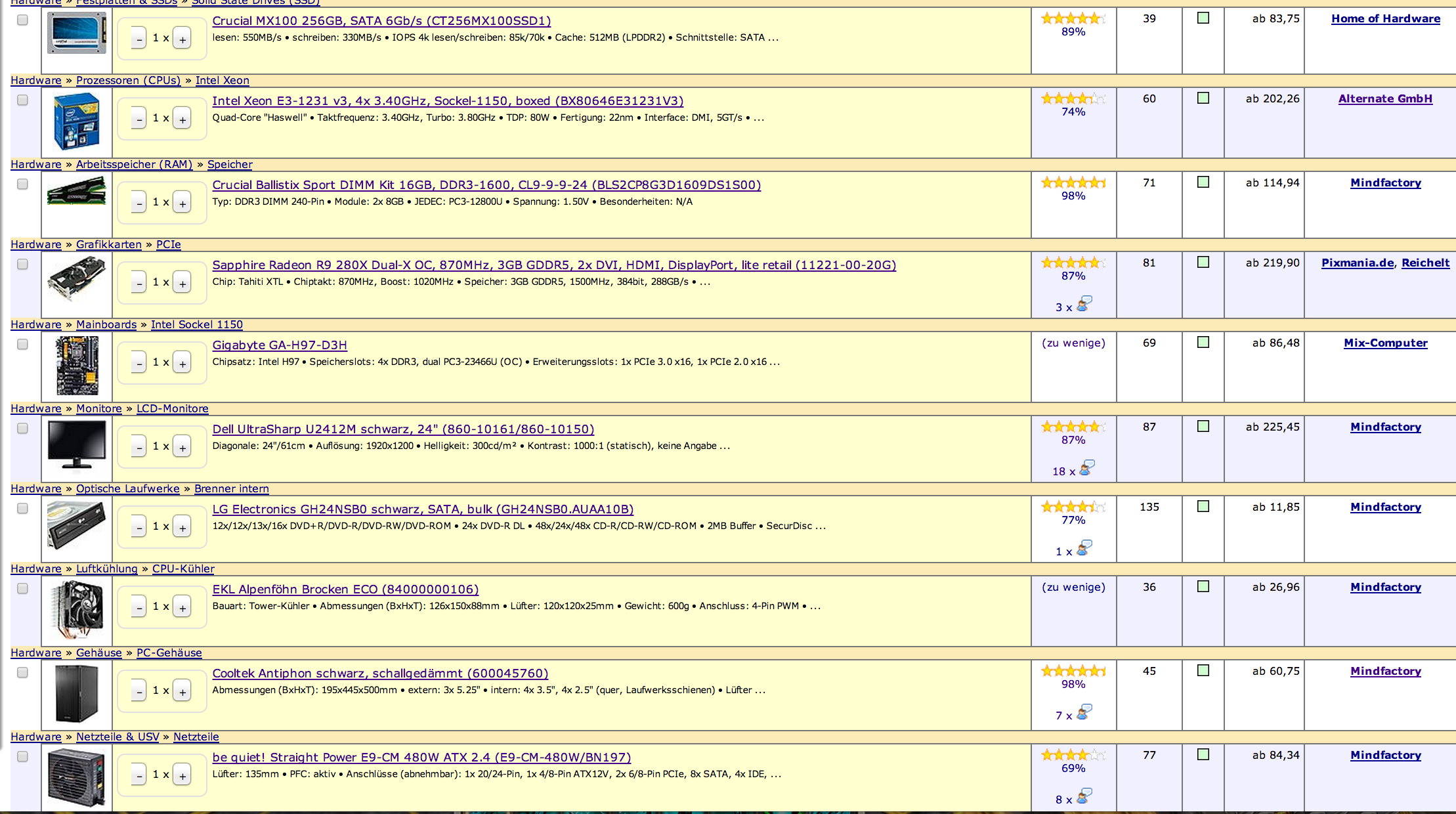 Falsch machste mit keinem etwas: http://geizhals.de/?cmp=452310&cmp=601154&cmp=1055677&cmp=859058&cmp=979277&cmp=1081623&cmp=684731&cmp=1039506&cmp=959487&cmp=1029178&cmp=701623