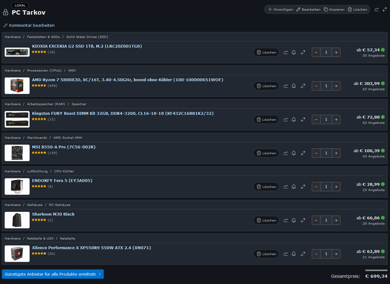 Ich würde also gern Kühler, Netzteil, Motherboard, SSD und Arbeitsspeicher gebraucht kaufen und dabei bei ca. 320€ bleiben.
