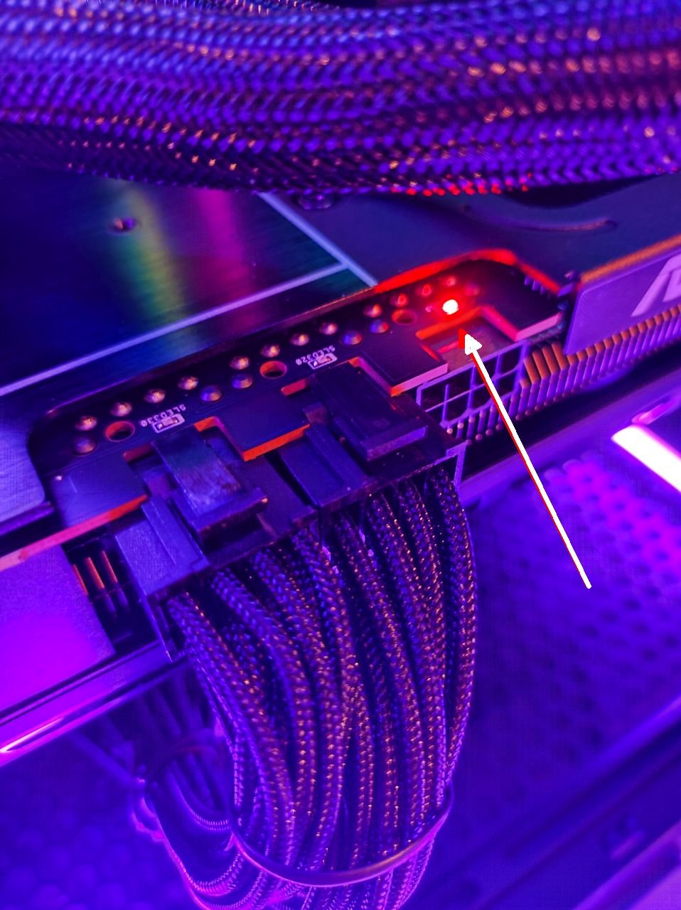 Der PC bootet. Bei der Grafikkarte haben sich zu keinem Zeitpunkt die Lüfter gedreht und sofort nach dem Start hatte ich dieses rote Licht: