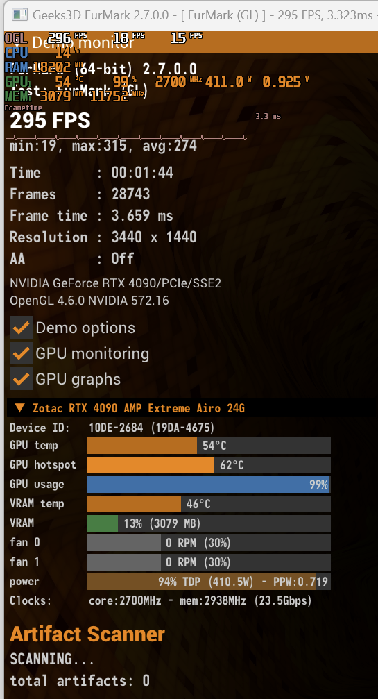Bei meiner 4080 bin ich in FurMark gleich bei 320 Watt Boardleistung. Da taktet die Karte nur bis 2000 MHz. Beim Gaming habe ich immer 2700 MHz.