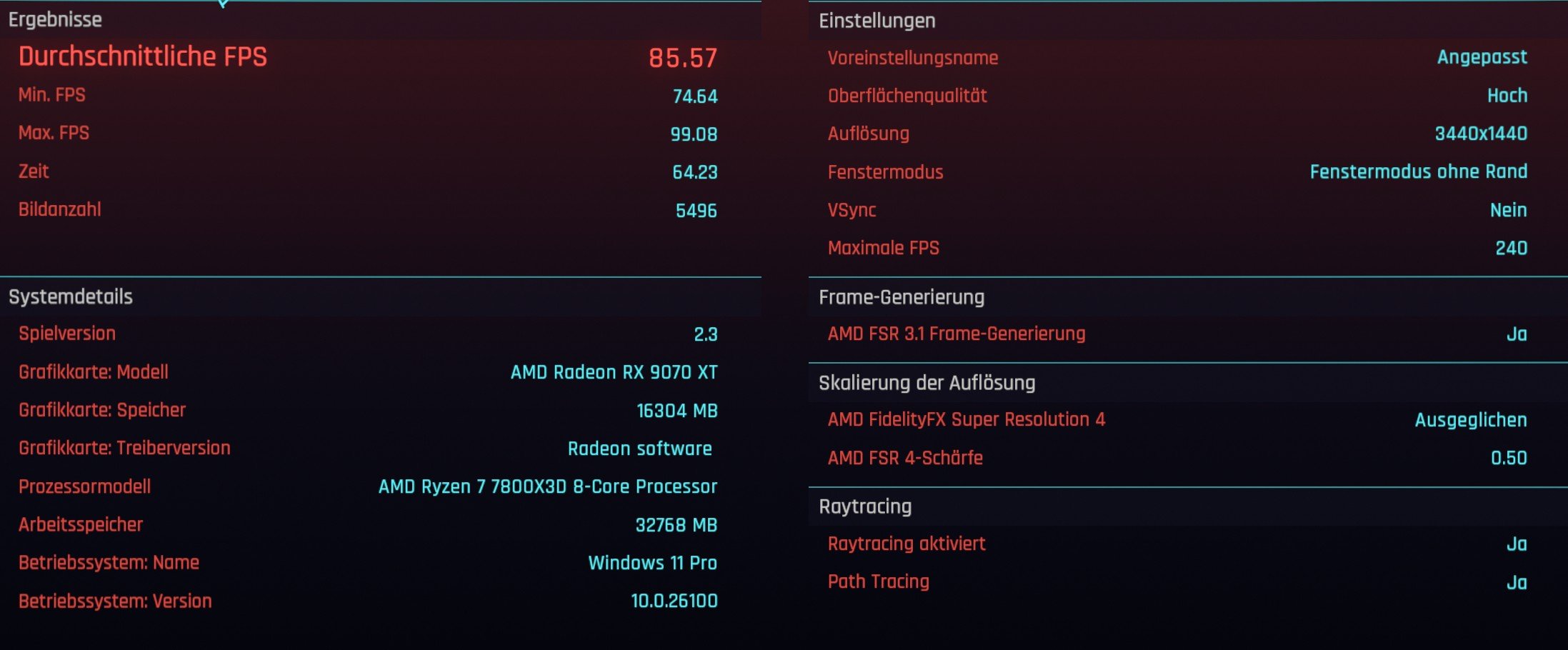 CP 2077 mit RT und PT jenseits der 100 FPS mit einer 9070 XT?! Dann kann ich ja meine 5090 verkaufen. /s