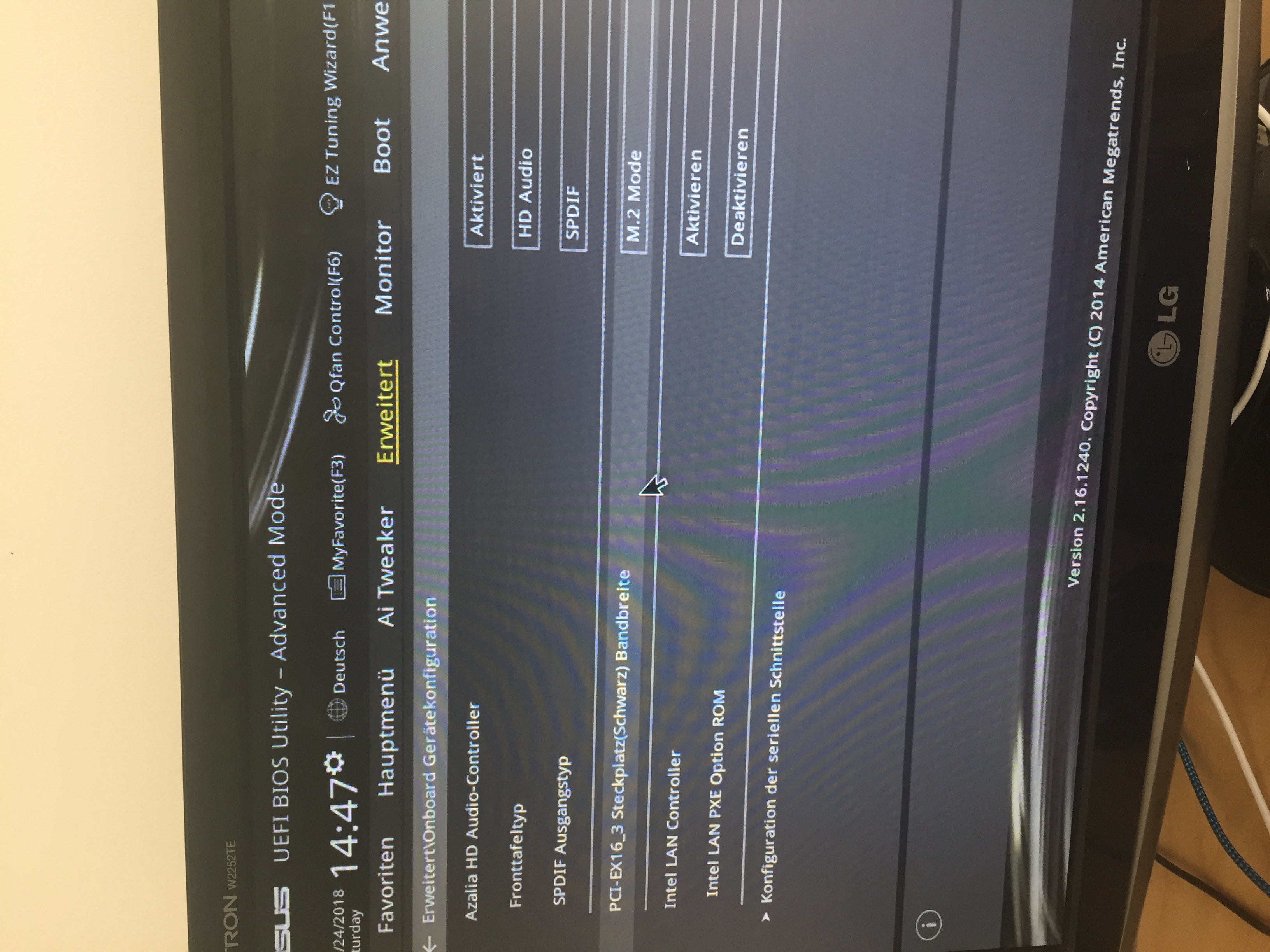 Habe im Bios von auf m.2 gestellt aber die Karte wird trotzdem nicht erkannt, aber wird im bios angezeigt. Dazu funktioniert die wlan karte dann nicht mehr da der pcie x1 auf m2 eingestellt ist. Muss ich noch was änder im Bios damit die Karte erkannt wird? Bios version 2801 (neuste)