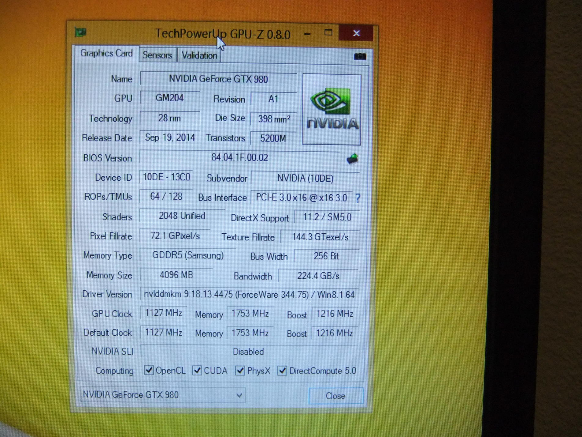 Palit 980 GTX die taktet auch nicht runter