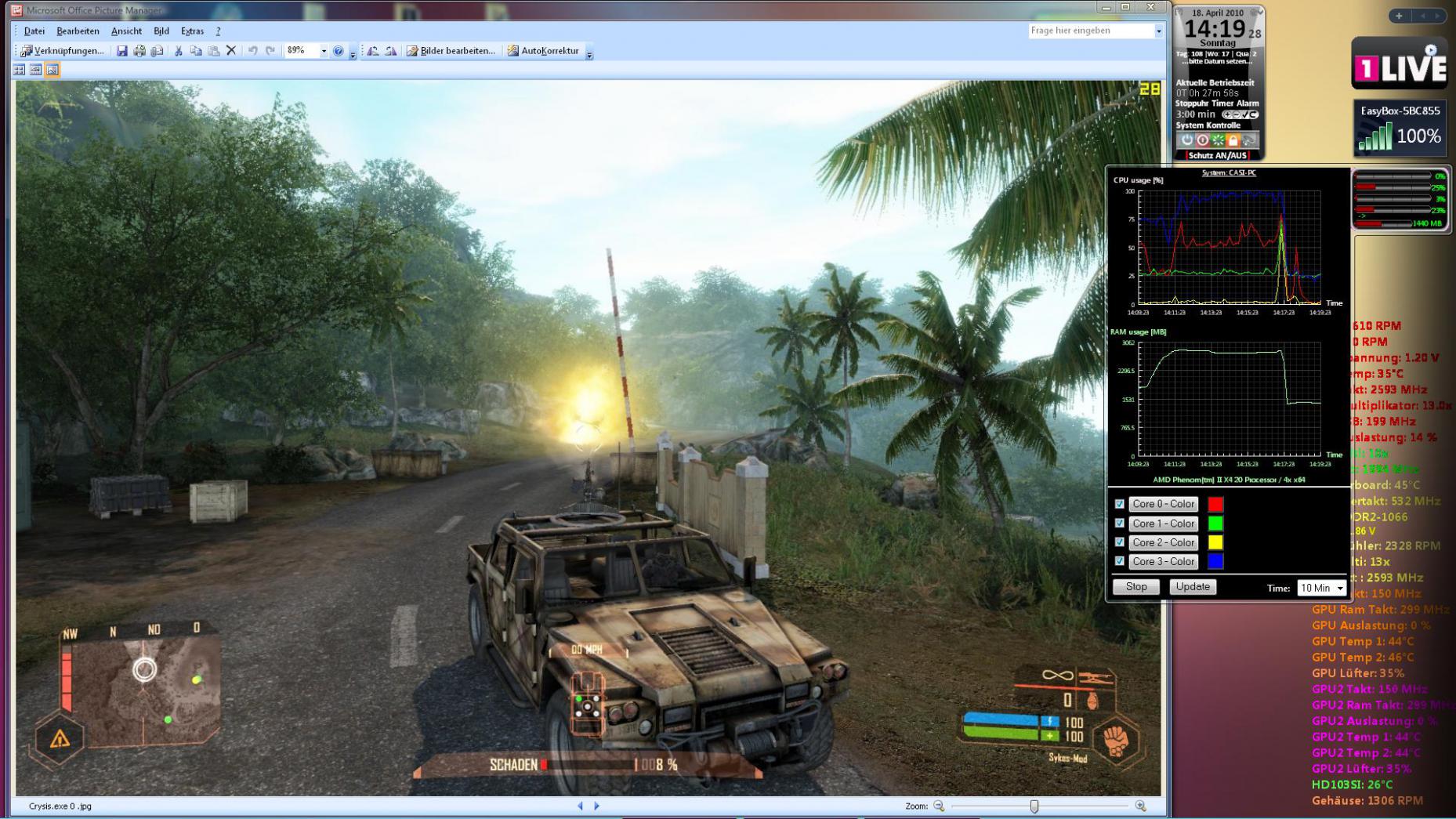 Wie schon mal gesagt @ HisN.1,5GB hab ich ca im Ram frei + 2000MB Auslagerungsdatei und Crysis lädt nicht komplett sondern bricht nach ca 70% ab und es kommt die Fehlermeldung das zu wenig Speicher vorhanden ist und die exe beendet werden muß.Mit ner Auslagerungsdatei von 2,5GB kann ich erst Crysis mit meinen 3 GB Ram Spielen(wovon noch rund 1,5GB verfügbar sind).Aber klar je weniger VRam um so mehr geht in den Ram und je weniger Ram zur ferfügung steht um so mehr muß ausgelagert werden.Und alles was ausgelagert werden muß ist zum Spielen misst.