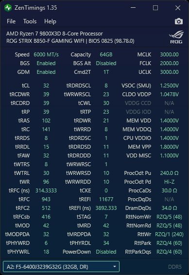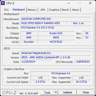 - Mainboard: ROG STRIX B850-F GAMING WIFI