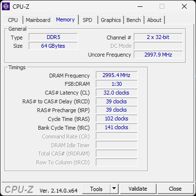 - Manuell auf 6000 MHz runtergestellt (Timing gemäss DOCP/XMP belassen)