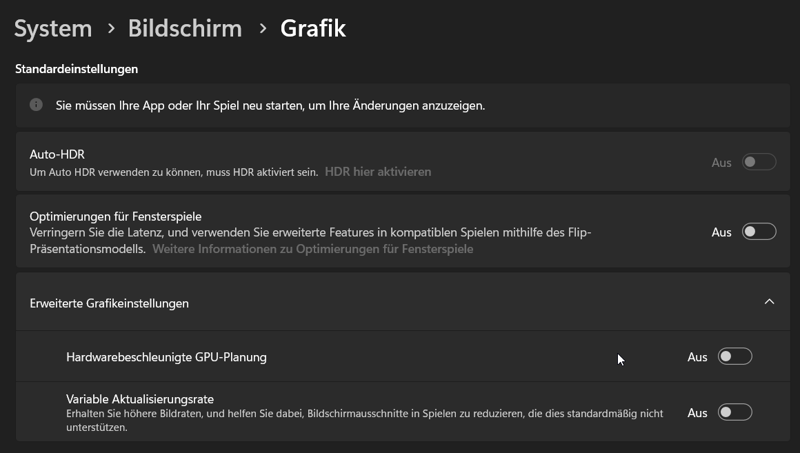 - Lüftermeldungen deaktiviert als einzige Anpassung