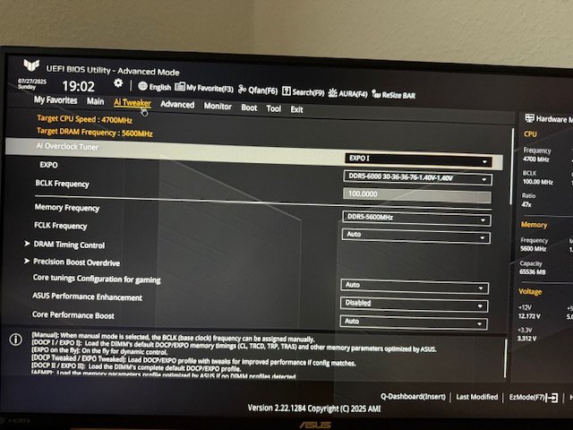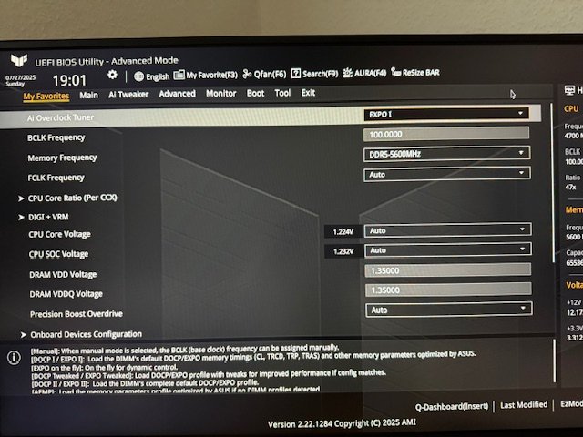 Ansonsten ist mir noch aufgefallen, dass im Bios Expo aktiviert war (?). Aber auf 5600 (?). Hätte Expo nicht auf 6000 dann stehen müssen? Das war aber nicht von mir, das muss Alternate so eingestellt haben. Vielleicht irre ich mich aber auch, ich mache gleich mal noch ein Foto von der Seite im UEFI. Wirkt sich das vllt auf die CPU Temperatur aus?