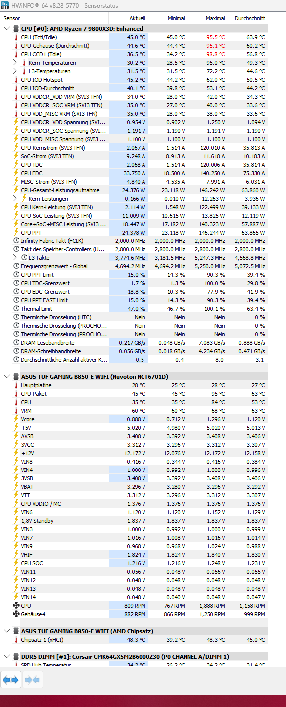 Ich hab den Eindruck, dass mein 9800x3D sehr heiß wird - mir ist aufgefallen, dass bei Sims 4 (!) die Lüfter sehr schnell gelaufen sind, der PC war sehr laut dadurch. Ich wollte eigentlich einen leisen PC. Aus Interesse habe ich bei HWInfo die Temperaturen geschaut und die CPU lief teilweise bei 70 bis 85 Grad? Bei Sims 4 ? Bei Skyrim lief sie allerdings nur auf 60 Grad. Mehr Möglichkeiten zum Testen hab ich gerade nicht.