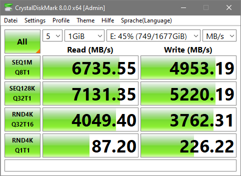 Die Geschwindigkeit ist soweit auch OK, nur verwundert es mich, dass meine PCIe 3 SSD bessere IOPS liefert als meine neue PCIe4 SSD.