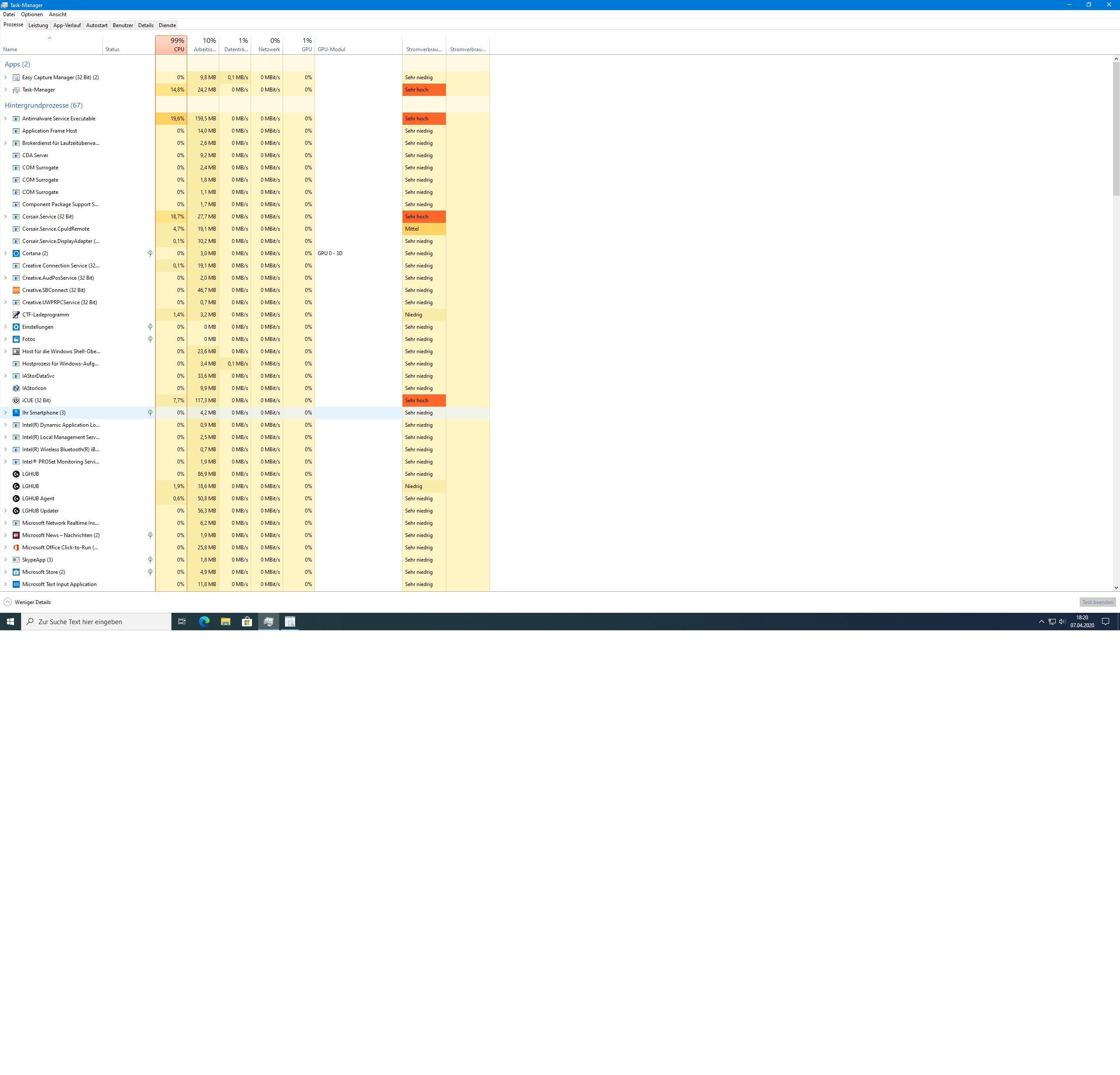 Hallo, ich hatte schon einmal das Problem,leider fand ich mein letzen thread dazu nicht mehr.Darum ging es ob ich gehäckt wurde da ich ebenfalls aufeinmal eine 100%CPU Auslastung hatte.Diesmal habe ich es geschafft ein Screenshot zu machen.Dieser Screenshot zeigt mein Taskmanager.Ich sollte noch erwähnen das mein Headset abundzu eine Makke hat (G635) von Logitech.Aber daran kann es nicht liegen oder?