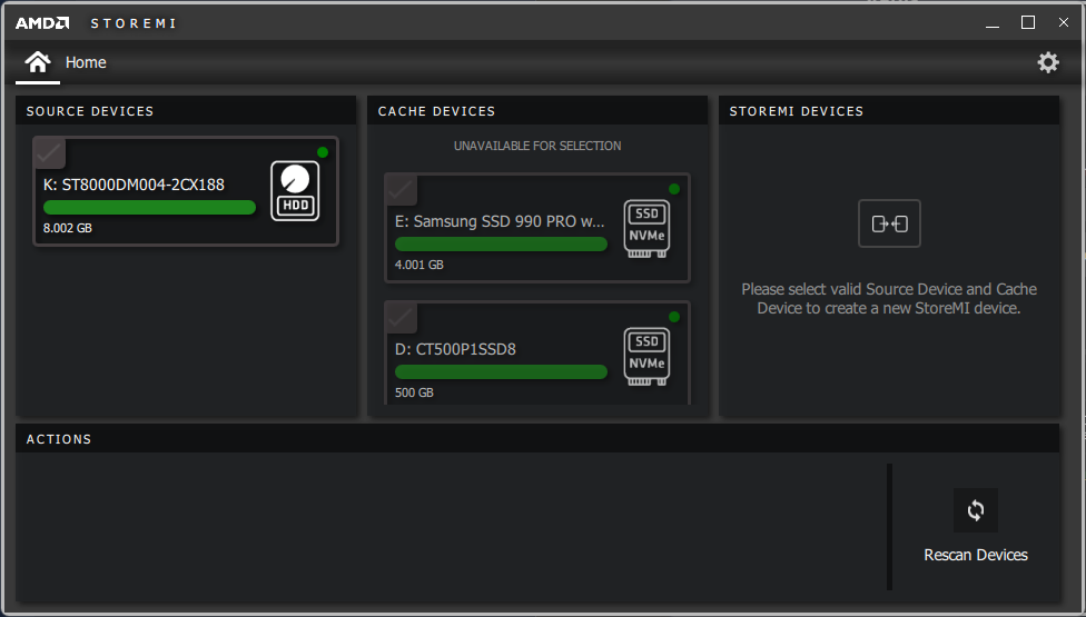 Da wurde auf Softwareebene ein StoreMI Device erstellt. Im Klartext (kann man im ersten Screenshot lesen), werden 2 SSDs als Cache für die Beschleunigung einer HDD zugeordnet.