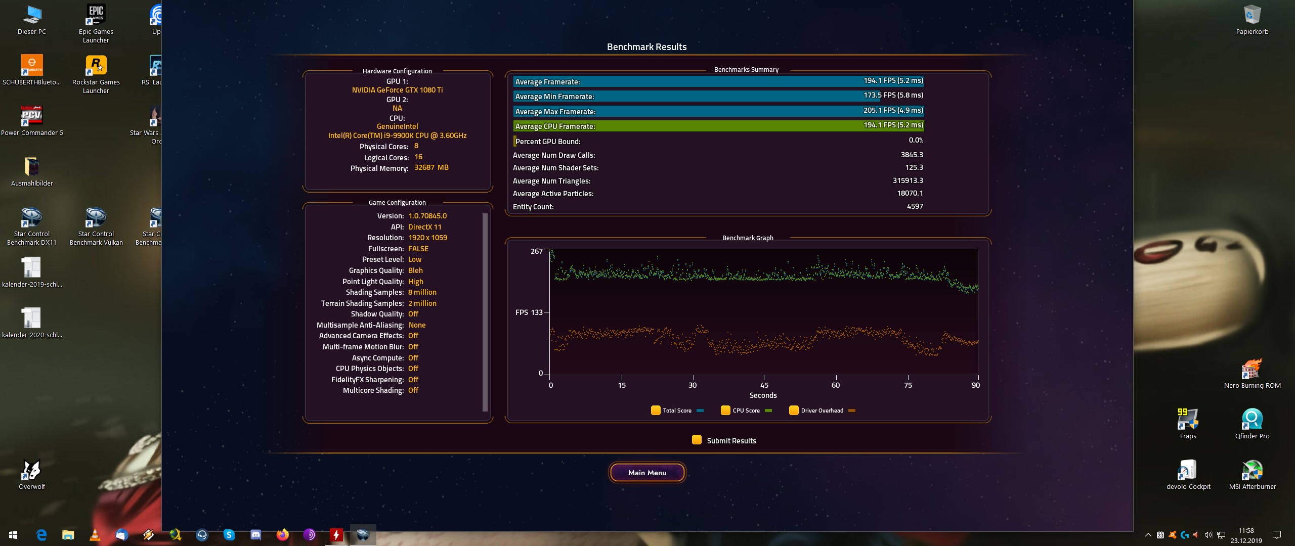 Hier mal mit 1080TI in 720P was natürlich totaler Quatsch ist aber die CPU Leistung zeigt