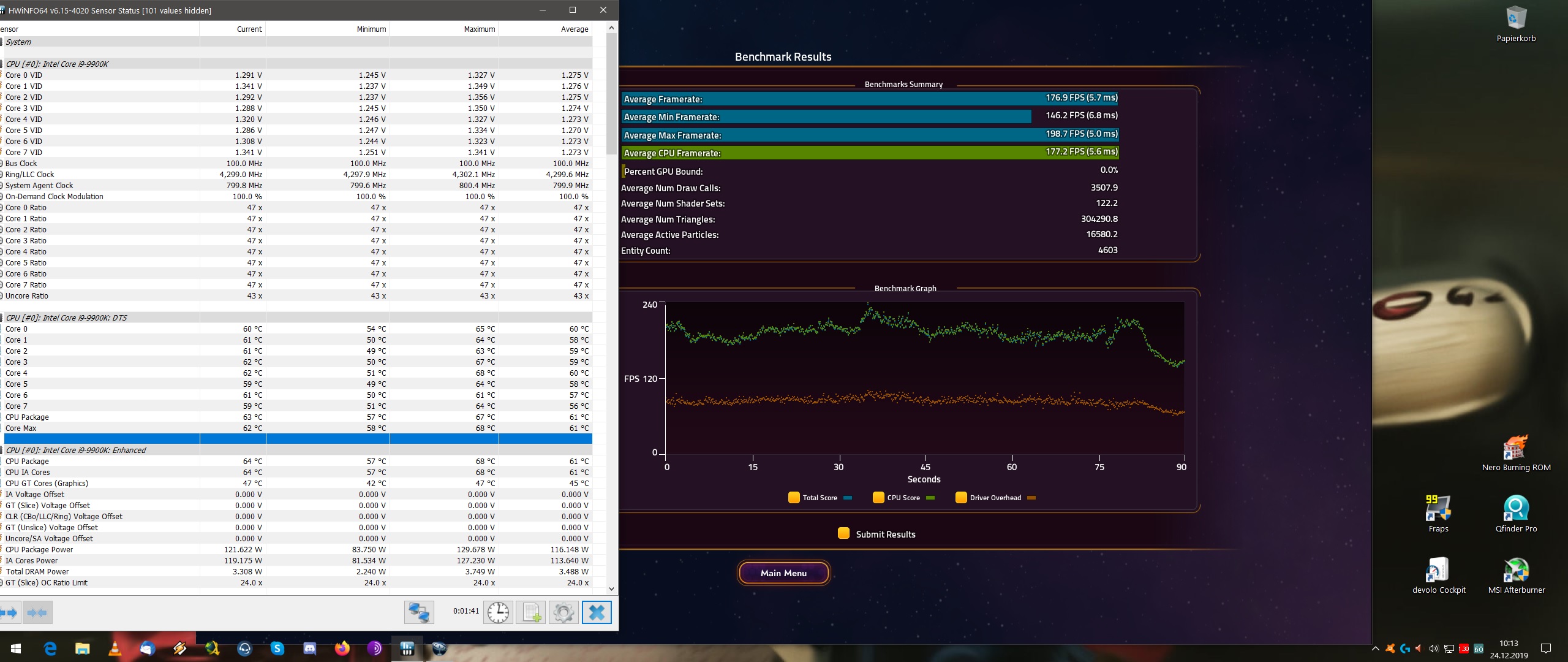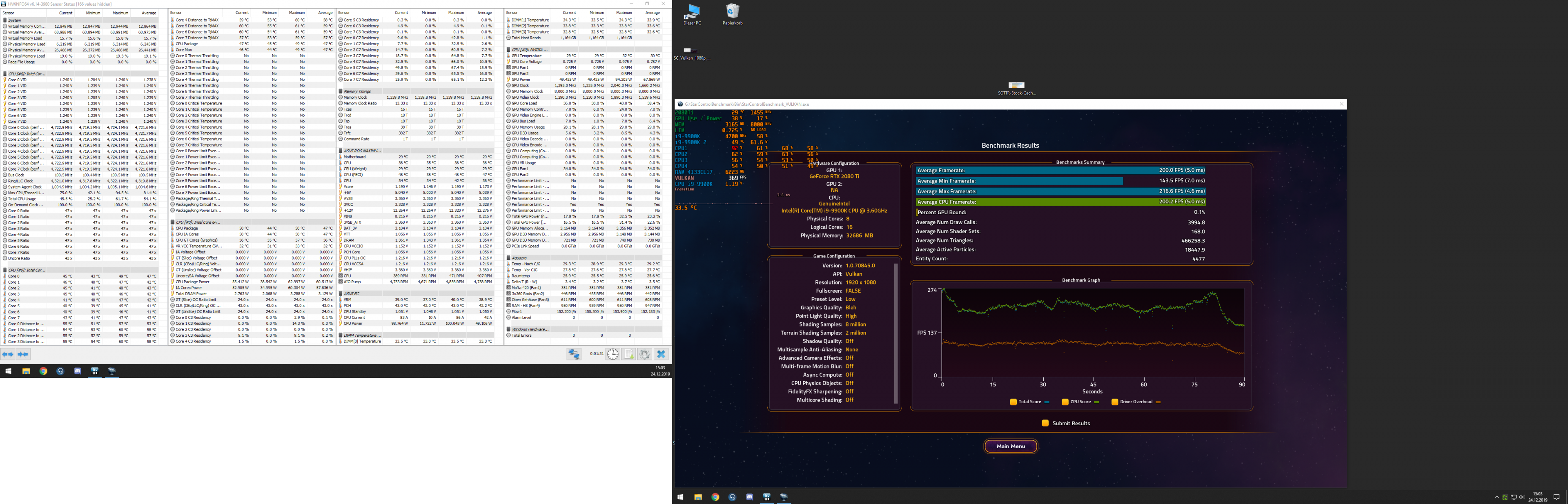 Min. Frames steigen auf über 201 FPS.