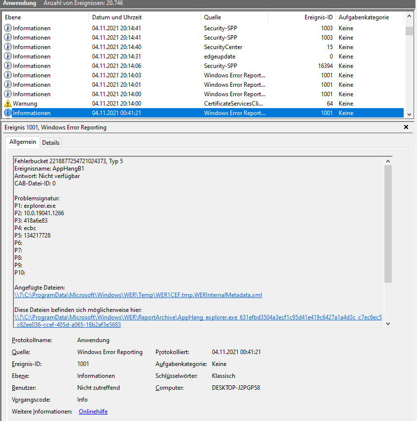 1. Problem: Wenn ich bspw. Bilder über ein spezielles Programm öffnen will, kann ich das nicht mehr mit dem Befehl "rechter Mausklick" --> "öffnen mit" machen. Der Explorer hängt sich auf und ich muss ihn anschließend über den Task-Manager beenden und manuell wieder öffnen. - Hinweis: Ich habe vor Monaten einmal im System herumgemurkst, insofern, als ich Paint3d deinstalliert hatte, einfach weil ich das nicht brauche. Habe es wieder installiert, das hat aber nichts gebracht. Hätte ja sein können, dass ich damit irgendwie Windows beschädigt habe.