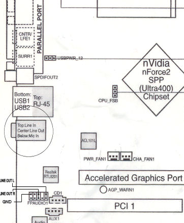 Das ganze äusert sich so das die drei ausgange für line out, line in und Microphone nur funktionieren, wenn ich auf dem Board Frontaudio anschließe.