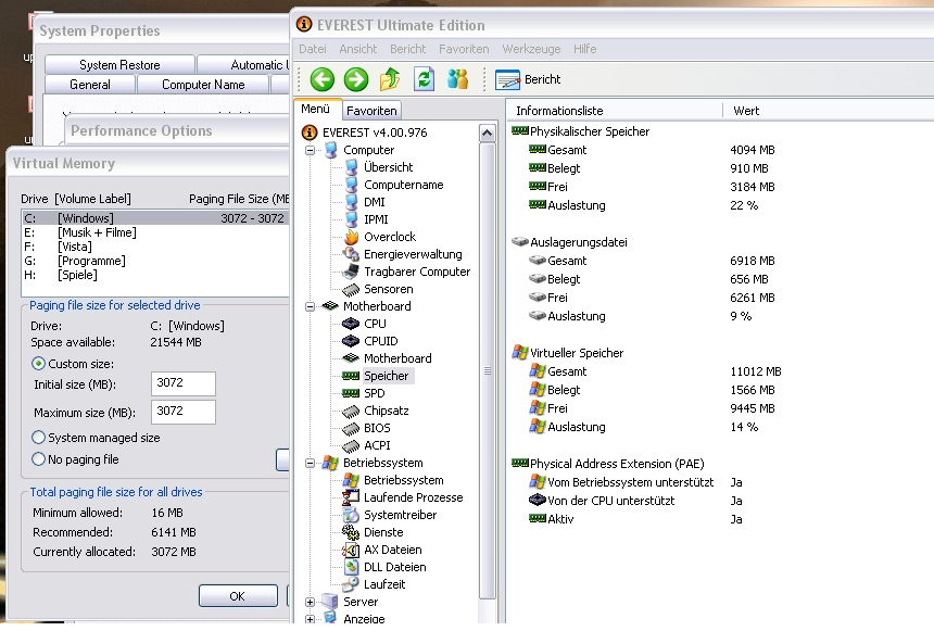 Über die Größe gibt es aber tausende Abhandlungen. MS selber empfiehlt das 1,5*RAM. Feste Einstellung der Werte unter Systemsteuerung - System