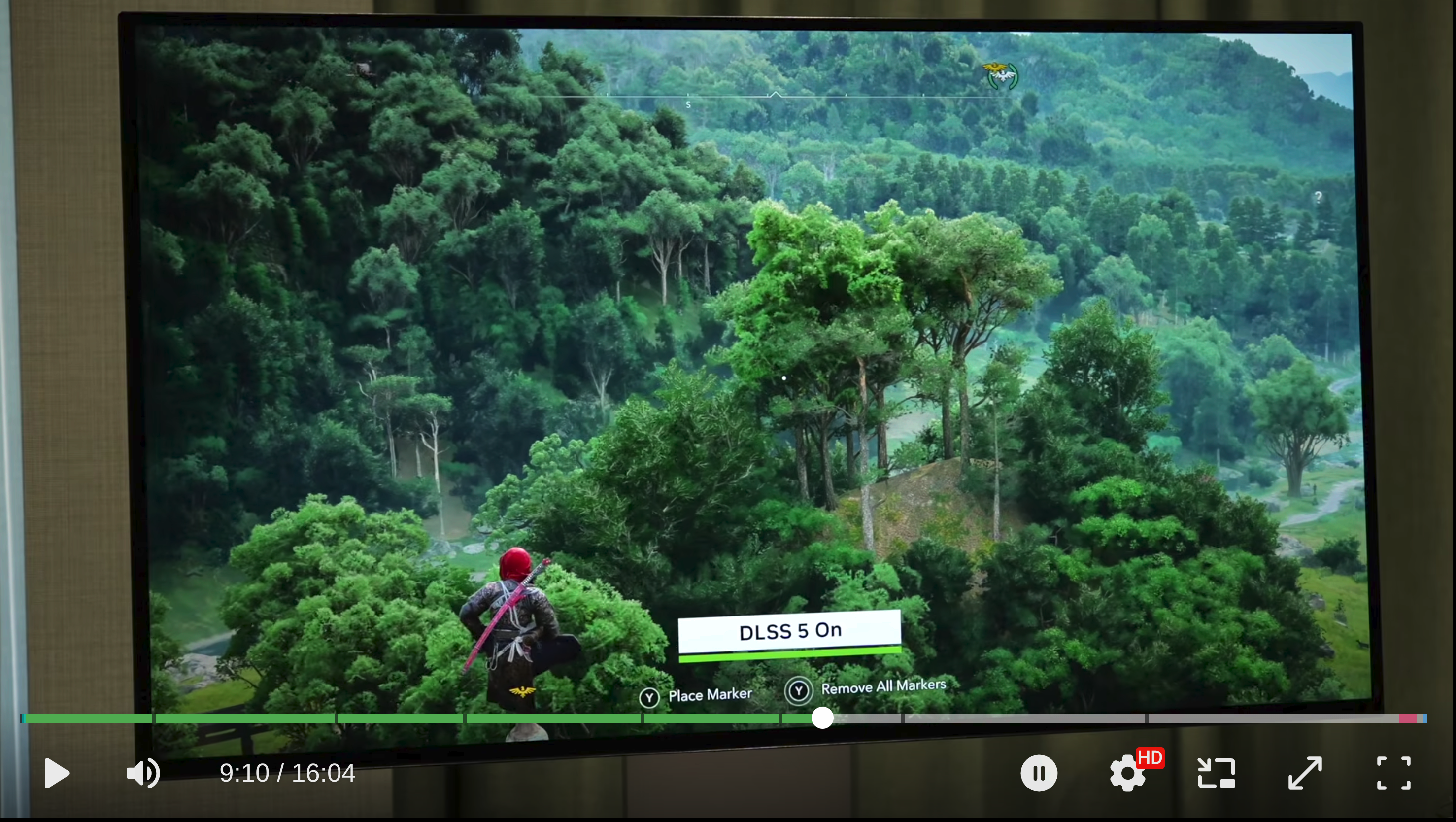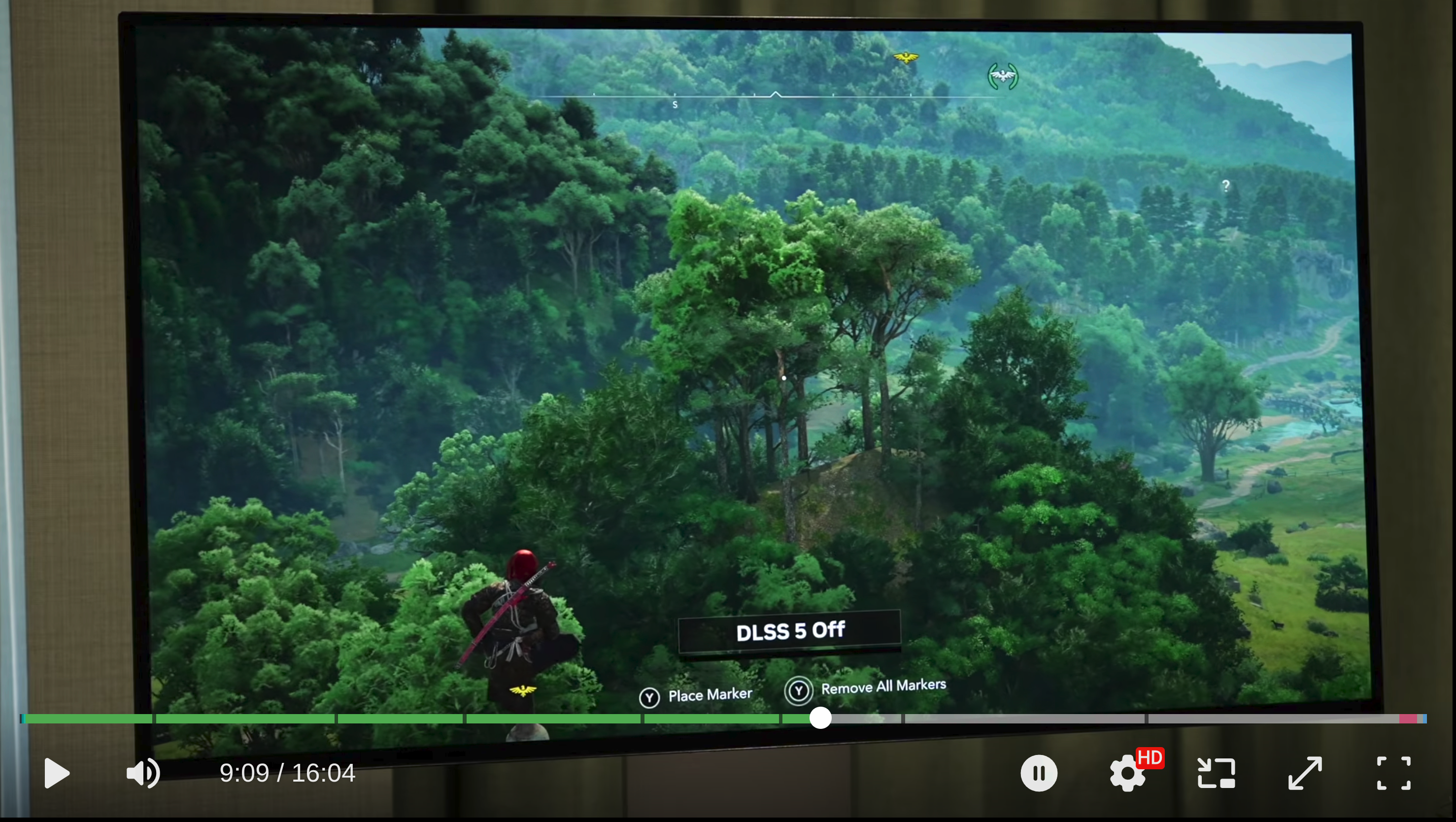 DLSS 5 hat die Beleuchtung und die Schatten komplett gekillt und durch irgendwas generisches ersetzt, was jedoch nichts mit der echten Lichtquelle und der Umgebung zu tun hat. Die Farben sind nicht mehr original, die KI hat sie sich ausgedacht. Der Kontrast ist falsch, die Farben... ach die habe ich schon erwähnt.