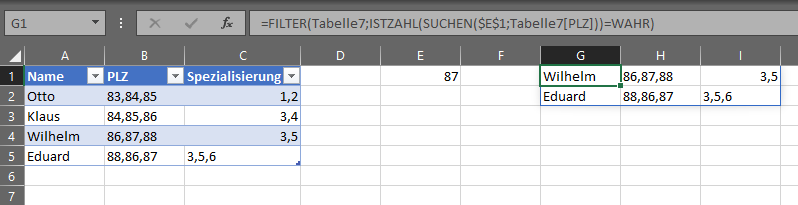 Mein Wunsch ist es nun das der Mitarbeiter sollte er den Notdienst nicht selbst übernehmen können einfach ein PLZ in Excel einträgt und ihm Excel sagt welche Mitarbeiter auch für diese gebiet zuständig sind.