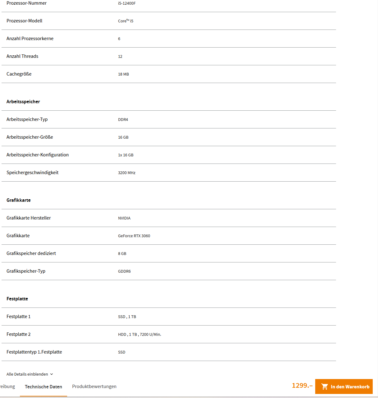 Einen? die 3060 anwählen als GraKa und Preis aufsteigend ... Sehr viele 3060 8gb PCs und einer sogar mit einer 3060 6gb (Mobile Version in einem Desktop?). Aber auch die 12gb Version wird aufgeführt. Es kann eigentlich keiner sagen, er hätte nicht gesehen, welche Versionen verbaut sind.