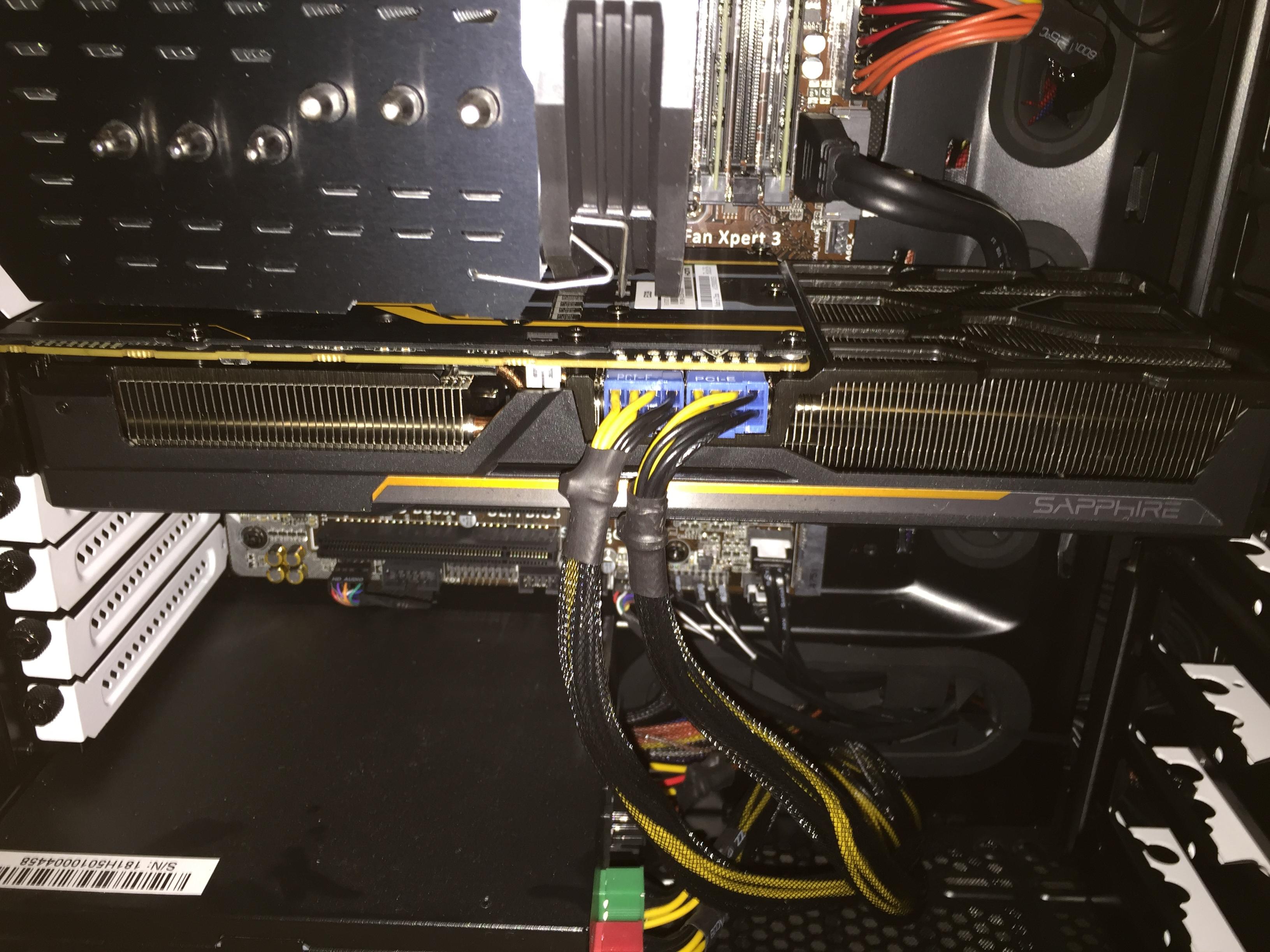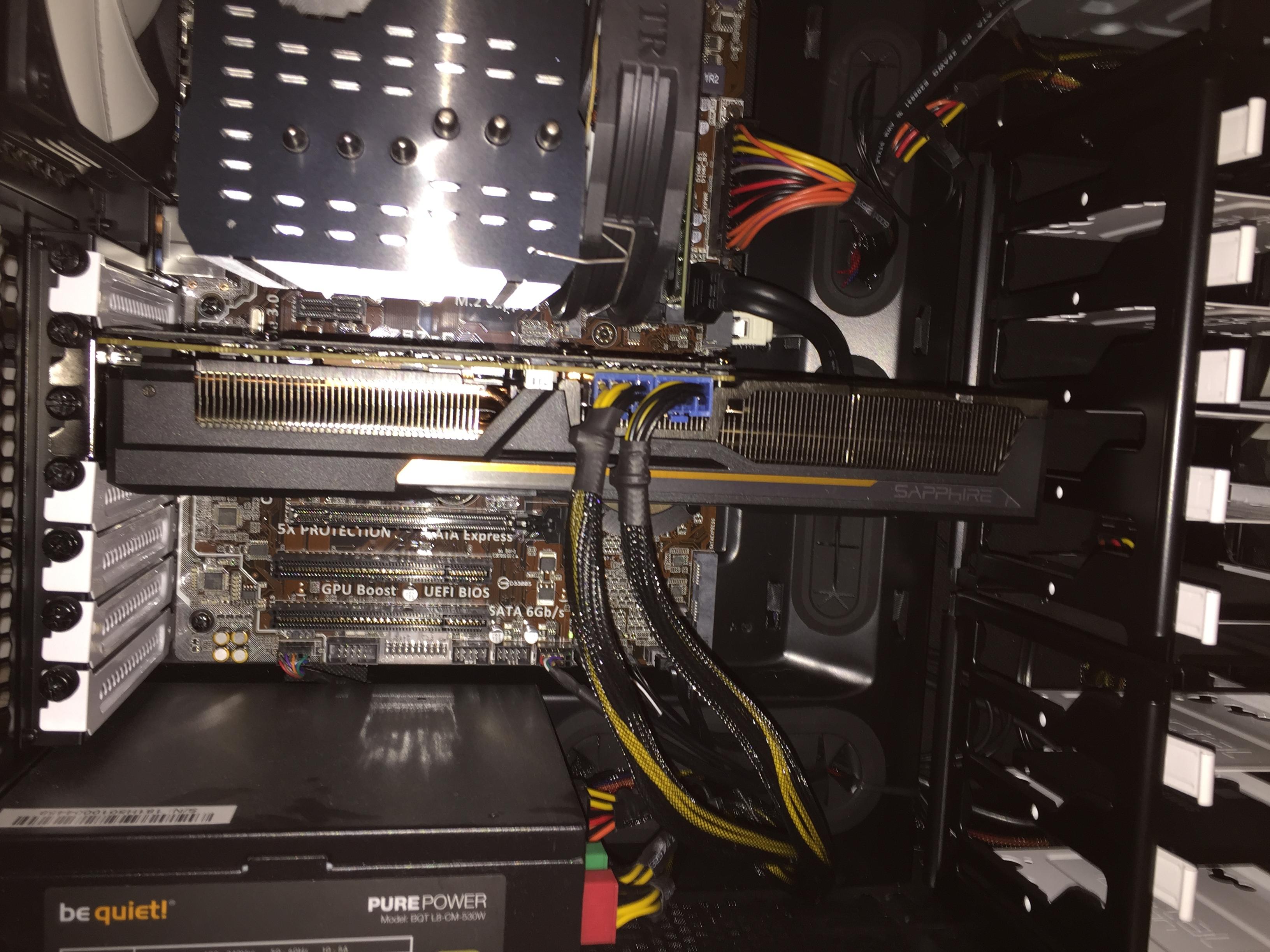 Habe eben versucht die Fury einzubauen. Bzw. sie ist eingebaut, macht aber keinen Mucks. Die blauen Stecker sind alle angeschlossen (inkl. dem 2-Pin-Stecker).