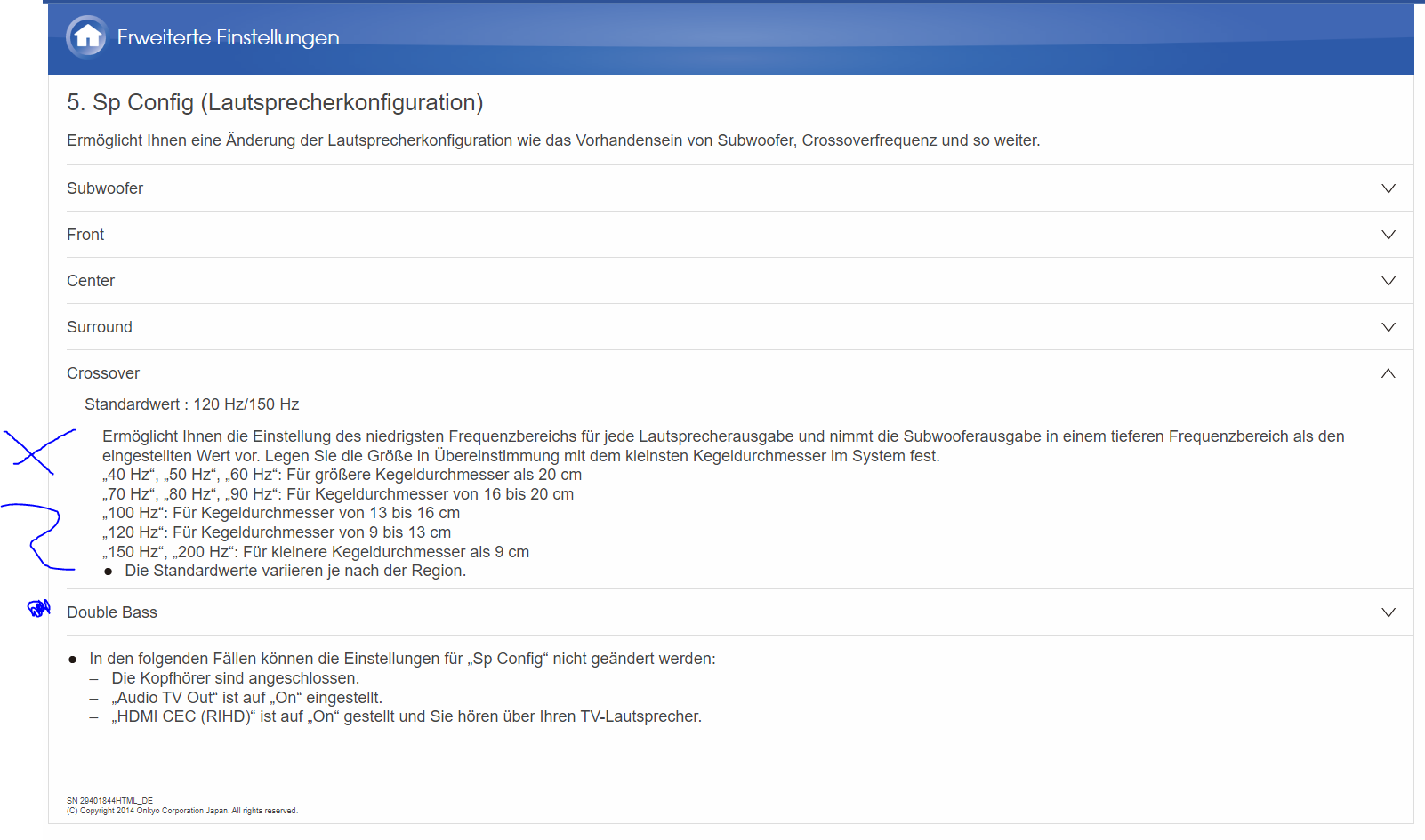 Am Verstärker bitte alles nullen was geht, am Besten auf Werkseinstellungen zurücksetzen, falls ein LFE gesetzt ist: komplett entfernen und dem Verstärker sagen, dass KEIN Subwoofer angeschlossen ist und dann selbstverständlich im Stereo-Modus betreiben (an diesem Punkt nicht "Direct" oder "Pure Audio" oder ähnliches - lediglich Stereo).
