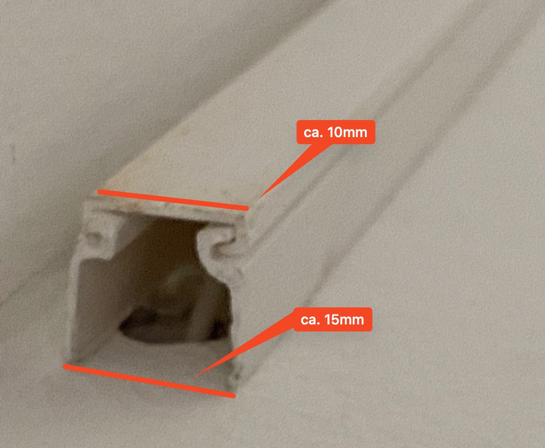 Daher meine Frage: kann jemand anhand der Fotos erkennen, welche Art von Kabelkanal-Abschlusskappe ich evtl. nutzen könnte? Muss nicht 100% superperfekt passen, evtl. könnte ich es mit ein klein bisschen weißem Silikon an dem offenen Enden reinkleben.