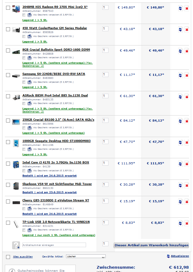 Im Anhang der momentane Warenkorb.