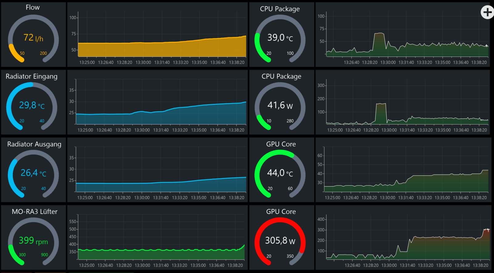 GPU Temp eben trotz 320W Vollgaß bis maximal 40°C gestiegen.