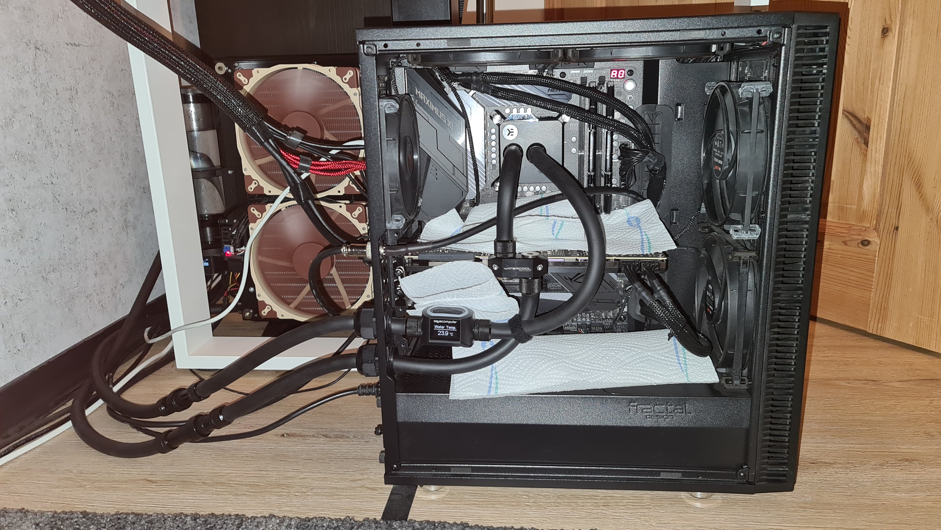Soooo hat deutlich länger gedauert als gedacht aber allein die GPU Kühler Montage hat Ewigkeiten gebraucht.