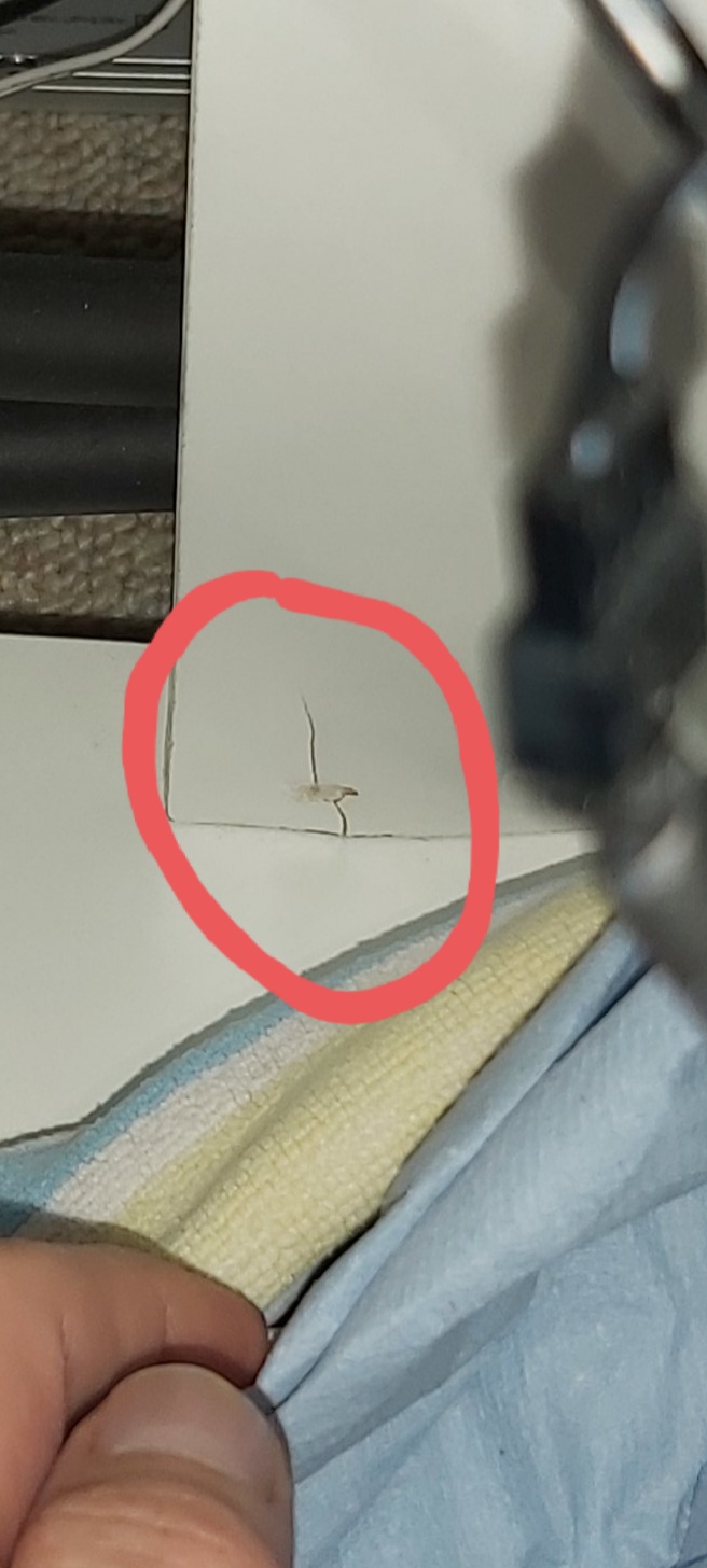 Sehr schwer das zu fotografieren aber hier ist das Glaß nicht ganz eben, da sind kleinste Stücke rausgeplatzt.