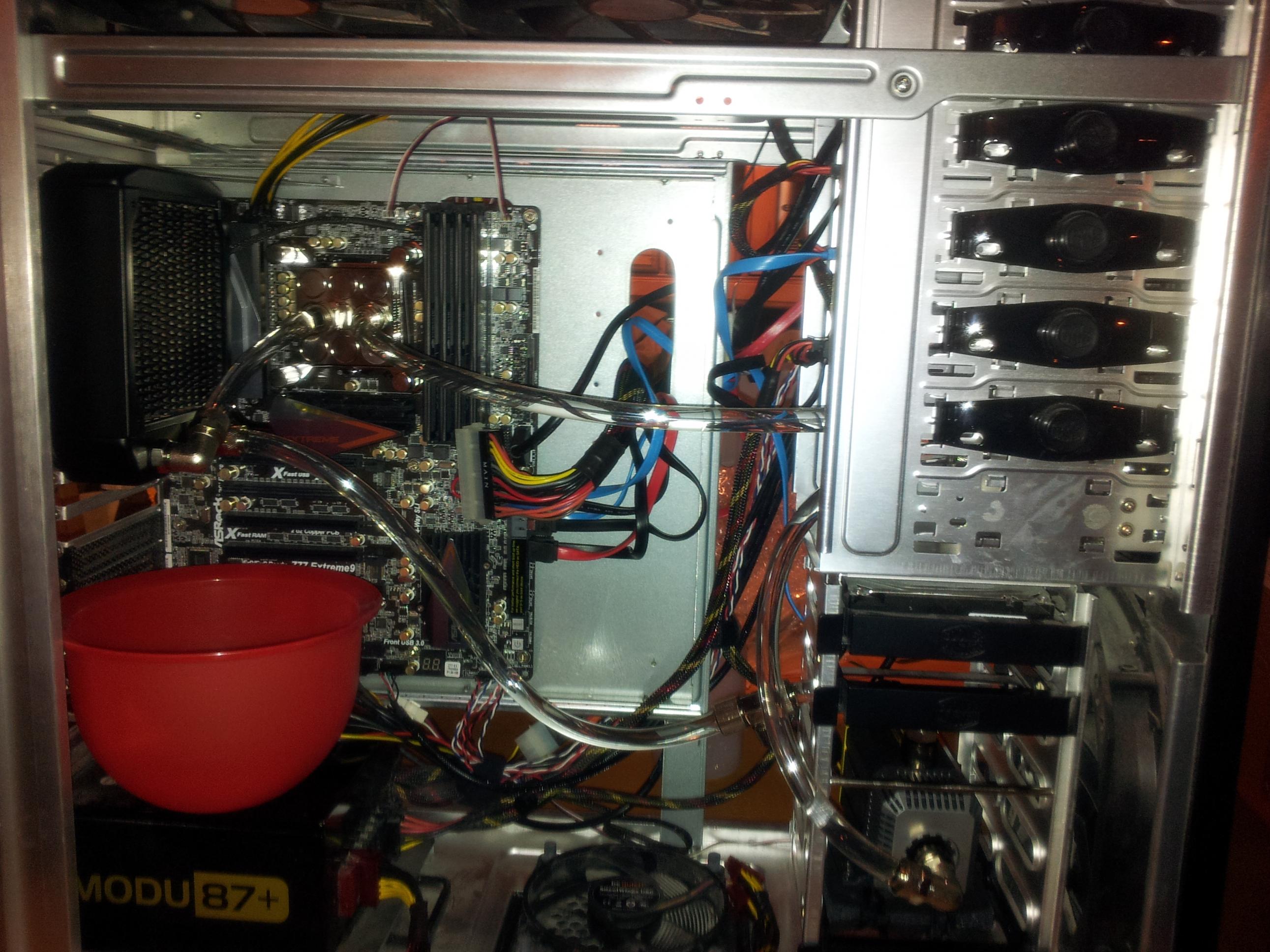Letztendlich habe ich die Effektivität einer Wasserkühlung doch sehr überschätzt, bzw. der Performance eines Prolimatech Supermega unterschätzt, aber ok ich kann ja noch Problemlos 5 * 120mm Radiatorfläche nachrüsten.