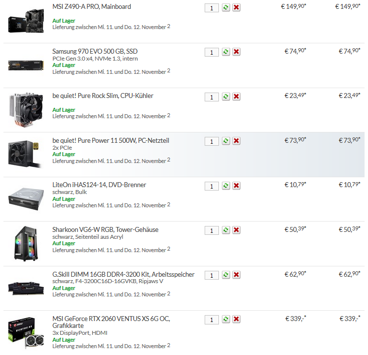 Bei Alternate ist 95% viel zu teuer. Nimm besser einen anderen Anbieter! ...müsste jetzt aber auch suchen wo die Teile nicht überteuert sind und der Zusammenbau nicht gerade 150 EUR kostet...