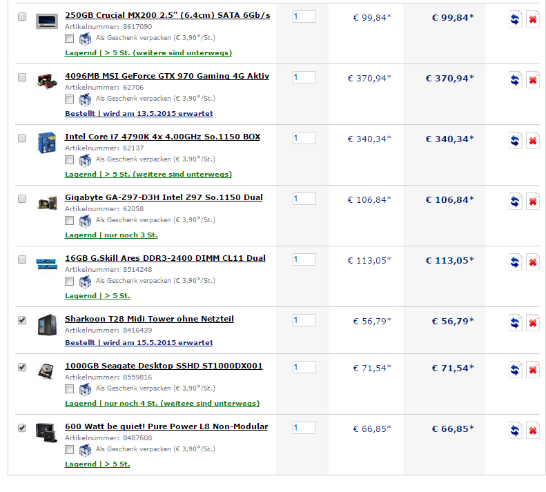 So ich habe nochmal die Sachen die ich schon habe mit einem Häkchen markiert.