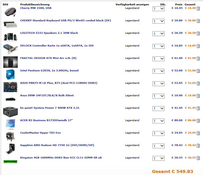 Mhh habe versucht das versucht ein bisschen zu drücken: Habe die Sapphire HD 7750 1GB GDDR5 reingemacht und den RAM gewechselt, passt nun alles für die genannten Anforderungen?