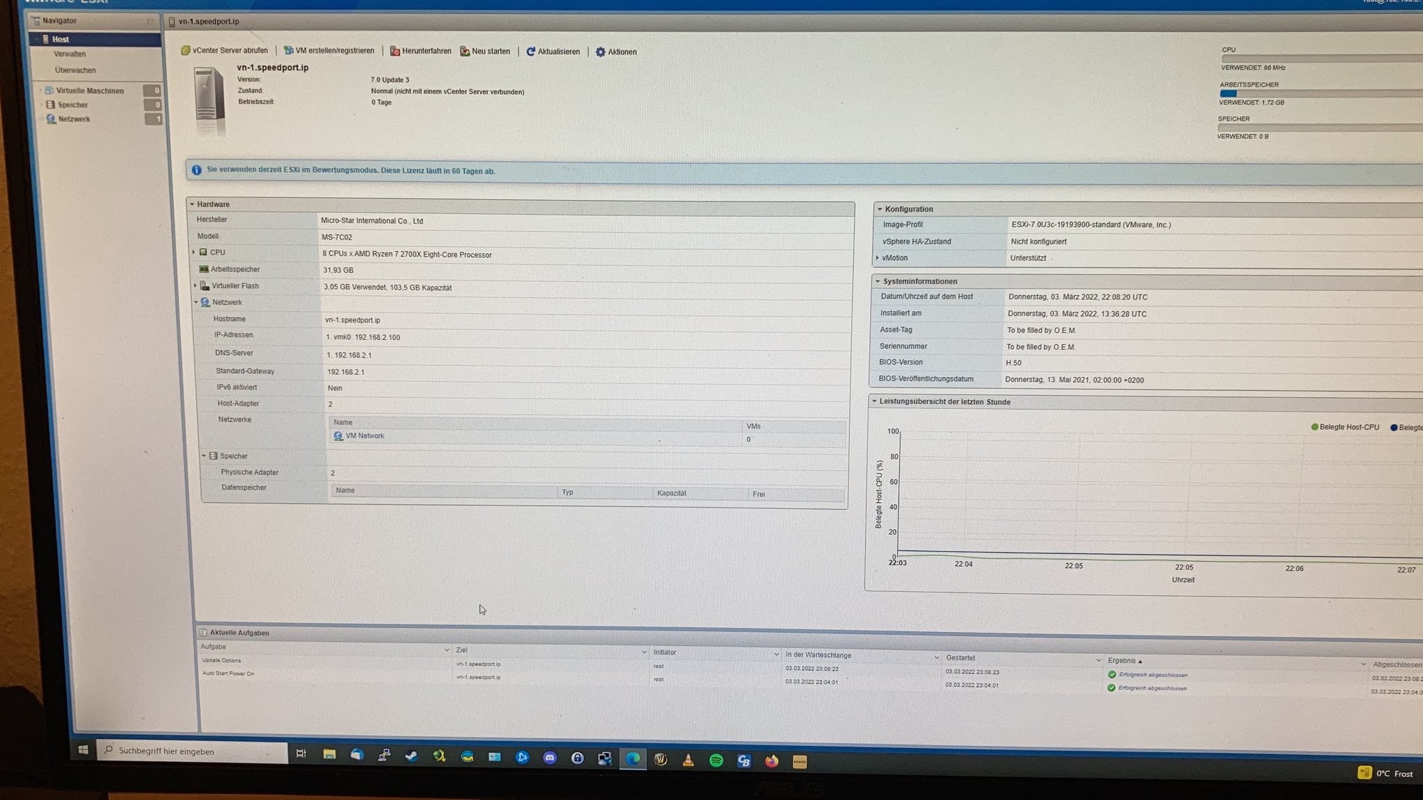 ESXi 7 in der free Version wird als Hyperrvisor eingesetzt.