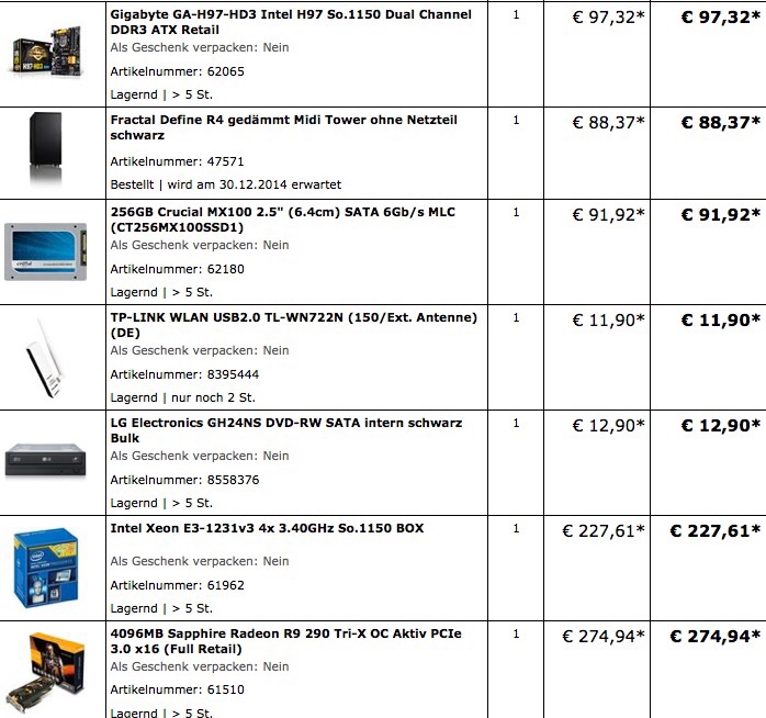 Ich bitte euch nochmal über meine Zusammenstellung zu schauen. Der Computer soll vor allem für Photo- und Videobearbeitung benutzt werden. Als Programme werden Lightroom, Photoshop und Sony Vegas zum Einsatz kommen. Spiele sind relativ nebensächlich. Das Budget liegt ungefähr bei 1100 Euro und die Teile sollen von Mindfactory bezogen werden.