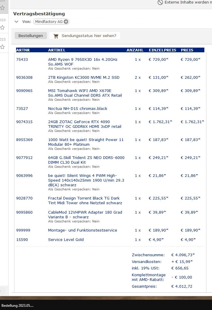 Habe meinen PC soeben bestellt, hier die Auflistung.