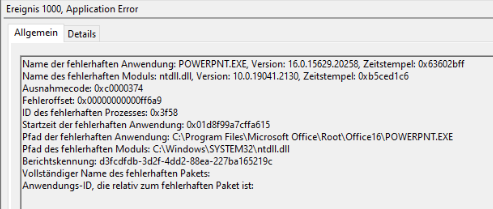 Wenn ich versuche, eine PowerPoint-Datei mit PowerPoint zu erstellen und diese auf OneDrive zu speichern, stürzt PowerPoint komplett ab. Die Datei wird auch nicht gespeichert. Auch das Öffnen von PowerPoint-Dateien vom OneDrive führt zu Problemen, da auch hier PowerPoint abstürzt.