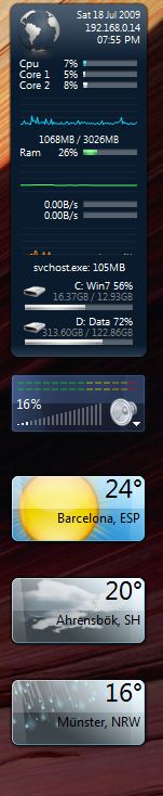 Kann man eigentlich den Abstand der Gadgets unter Windows 7 konfigurieren? Ich habe z.B. 3 Wettergadgets untereinander und die Abstände sind sehr groß - jeweils etwa 50% der Gadgethöhe. Sieht irgendwie nicht so toll aus...