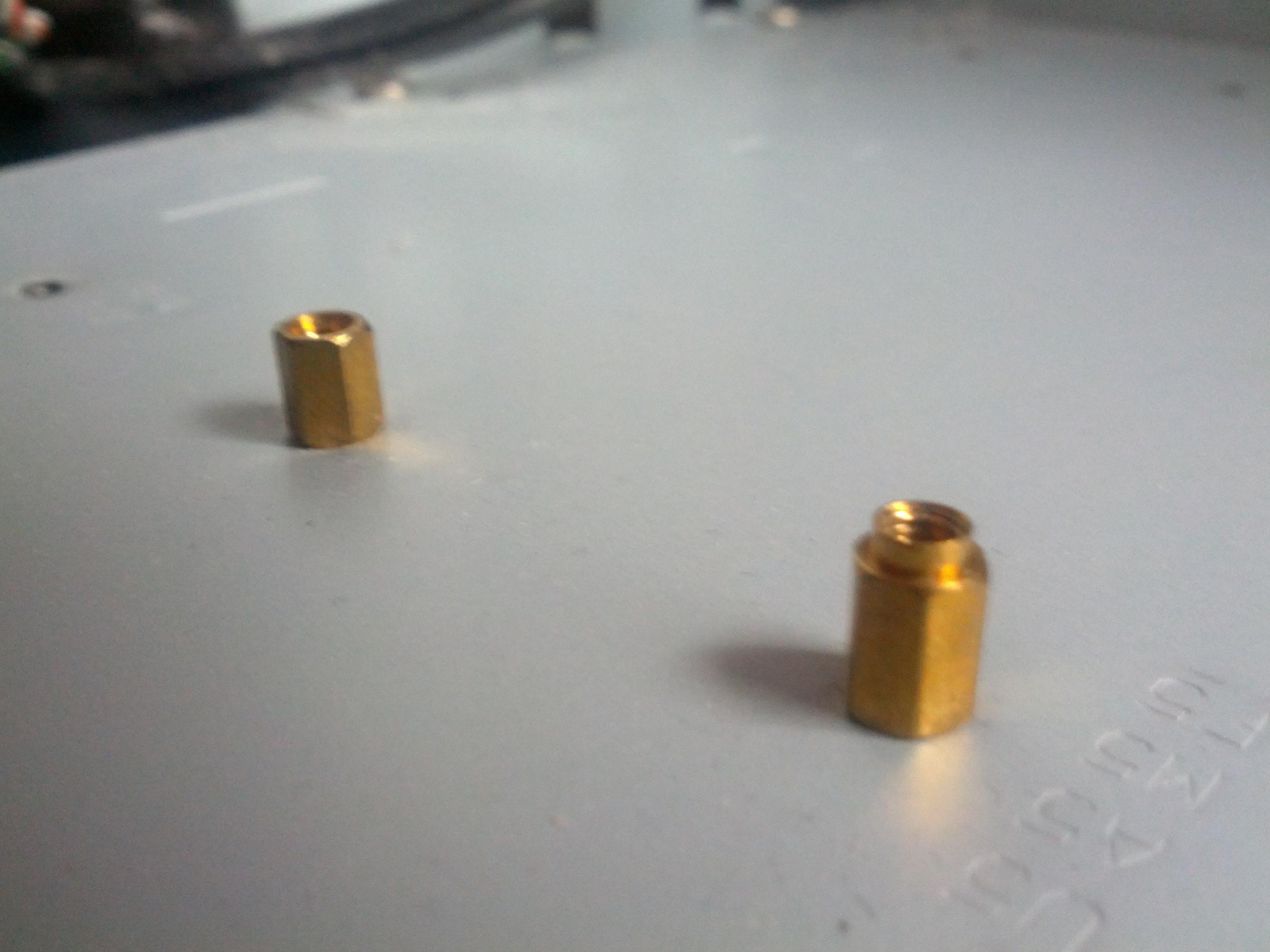 Bild 2 zeigt, wie eigentlich alle Abstandshalter aussehen (auch die, die noch eingetütet sind), bis auf 2 Stück, die im Gehäuse reingeschraubt wurden. Diese 2 sehen so aus, wie der rechte Abstandshalter im 3. Bild, der eben länger ist.