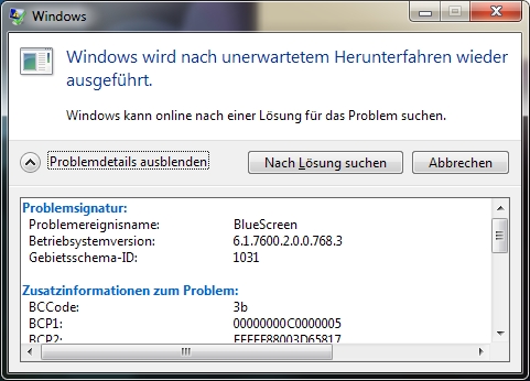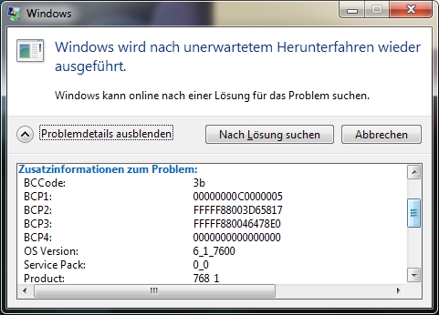 Ich muss dazu sagen das der Fehler erst Kamm wo ich das Windows 7 komplett neu drauf gesetzt habe, könnte vielleicht auch an einen BIOS Update liegen aber das ist alles nicht mehr nach nachvollziehbar.