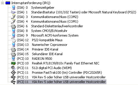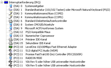 Die Interrupts sind bei der Netzwerkkarte und der Grafikkarte gleich. Könnte das evtl. das Problem sein? Was kann man da machen, um verschiedene Interrupts zu bekommen?
