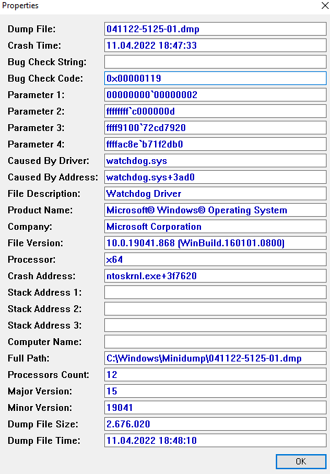 Ich bekomme folgende .dmp nach einem Absturz (Bild):